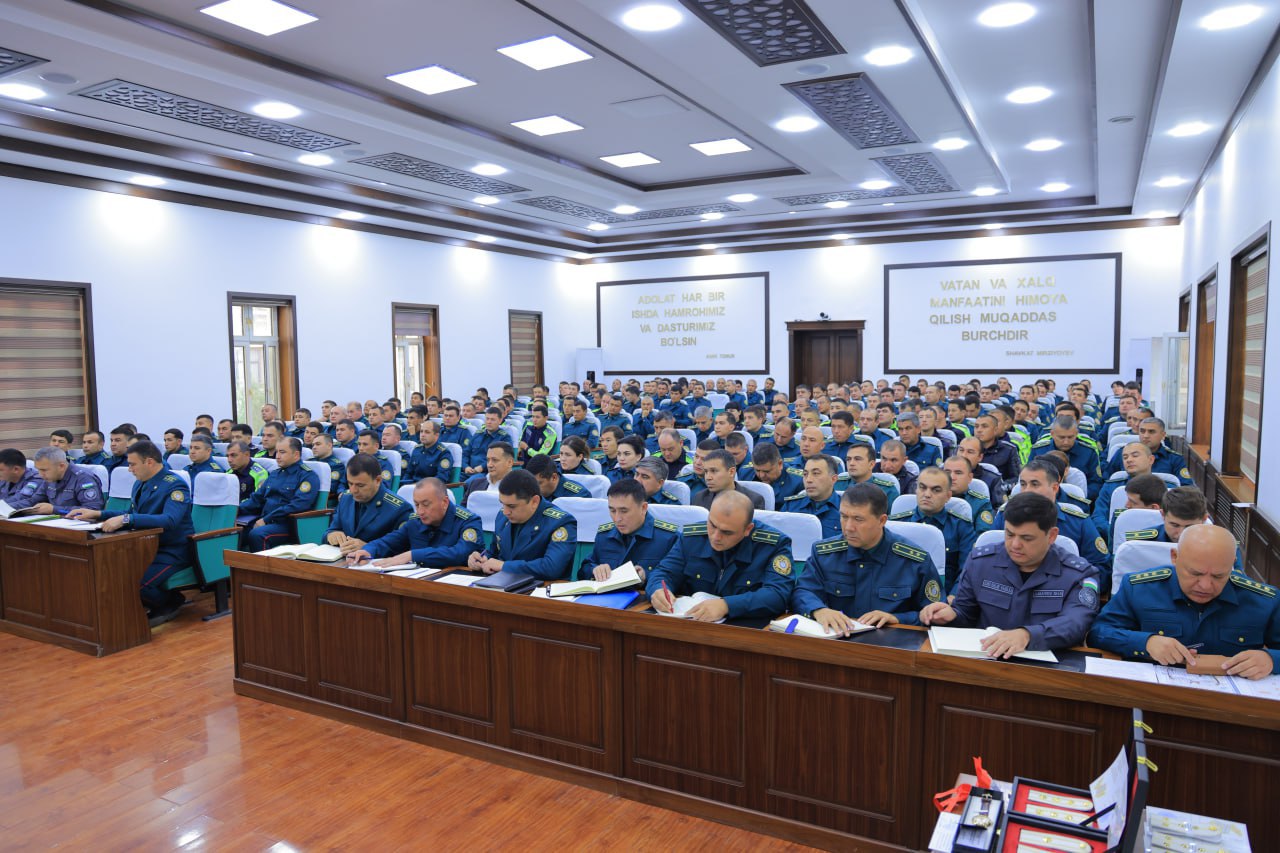 Йиғилишда, хизмат интизомини мустаҳкамлаш, ички тартиб ва назоратни кучайтириш зарурлиги таъкидланди. Бошқарма раҳбари масъулларга жамоавий масъулиятни ошириш, ҳар бир ходимнинг фуқаролар осойишталиги йўлидаги хизматини янада самарали ташкил этиш бўйича кўрсатмалар берди.